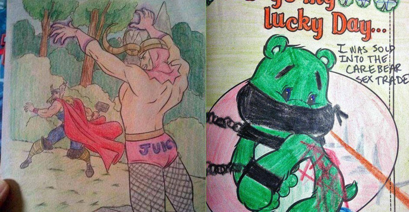 These were once wholesome coloring books, full of happy woodland creatures and Disney princesses.