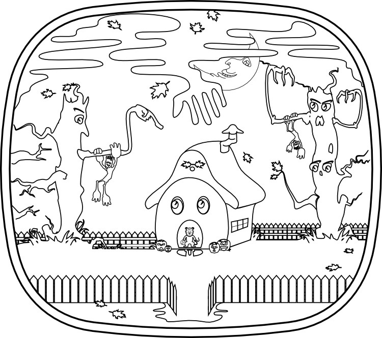 Halloween Scene Coloring Pages - designkids.info. The article includes coloring sheets of Jack-o-lanterns, monsters, trick or treat, witches, haunted house and about everything that you experience on a Halloween night. And we have intricate coloring pages for big kids and adults too.
